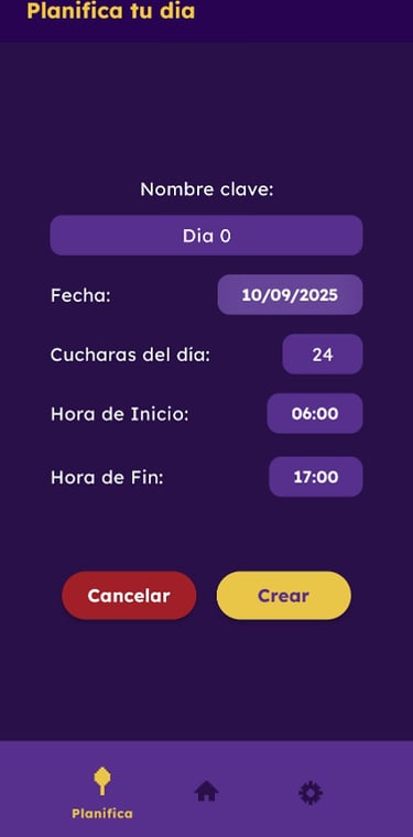 Puedes asignar un nombre, la fecha y horarios y cuantas cucharas tienes disponible ese día.