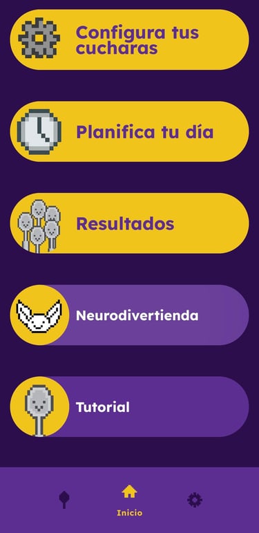 Cada tarea (levantarse, trabajar, socializar) cuesta cucharas.