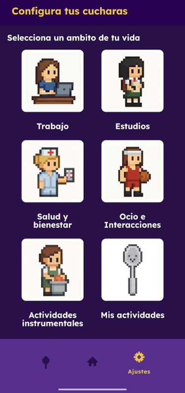 Selecciona el ámbito de tu vida que quieres configurar