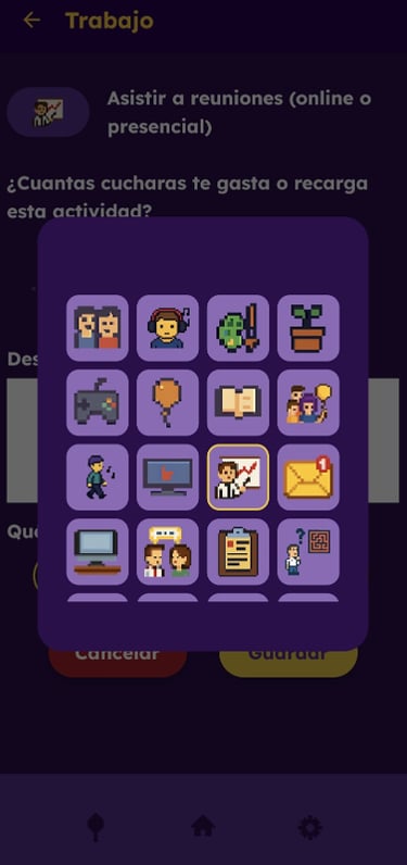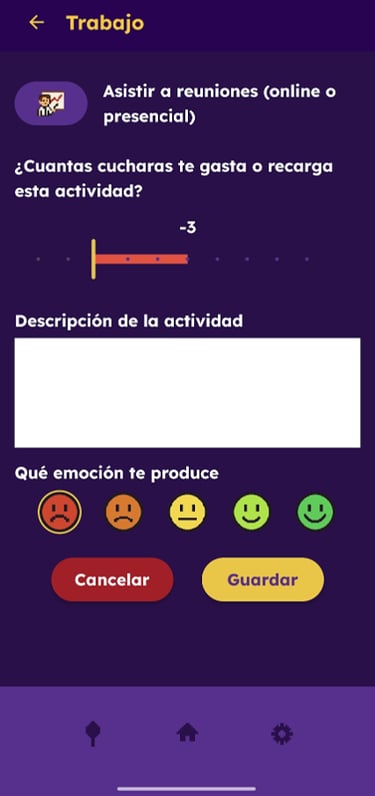Usa la barra para ver cuantas cucharas gasta o recupera cada actividad